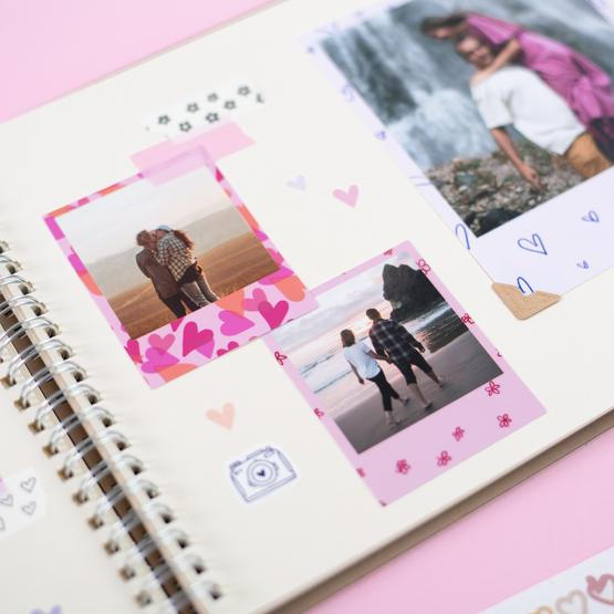 Fotoaufkleber machen Scrapbooking zum Kinderspiel. Verabschiede dich von Washi-Tapes oder Fotoecken. Einfach die Fotos aufkleben, Dekorationen oder Beschriftungen hinzufügen, und fertig. Verwandle Fotos in Aufkleber.